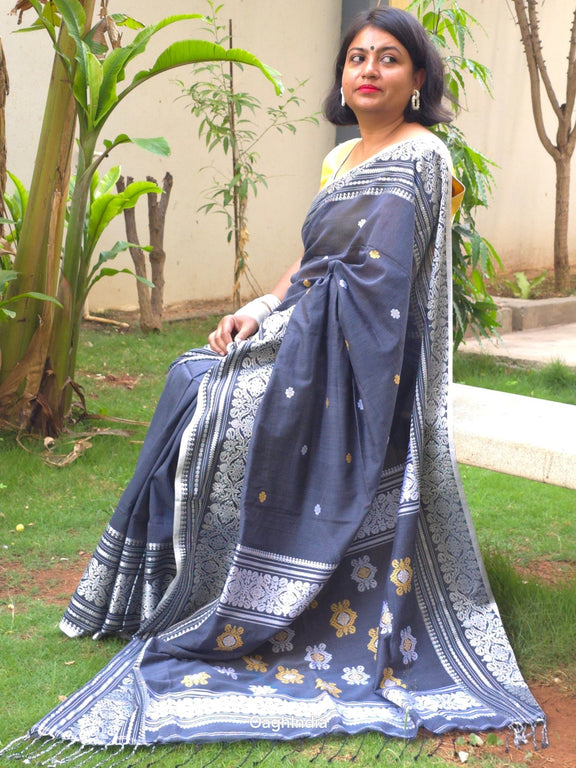 Step into timeless elegance with this exquisite handwoven saree, adorned with regal silver and gold threadwork. Crafted in rich mercerized cotton, this saree combines heritage weaving techniques with contemporary grace, offering a subtle sheen and unmatched comfort.