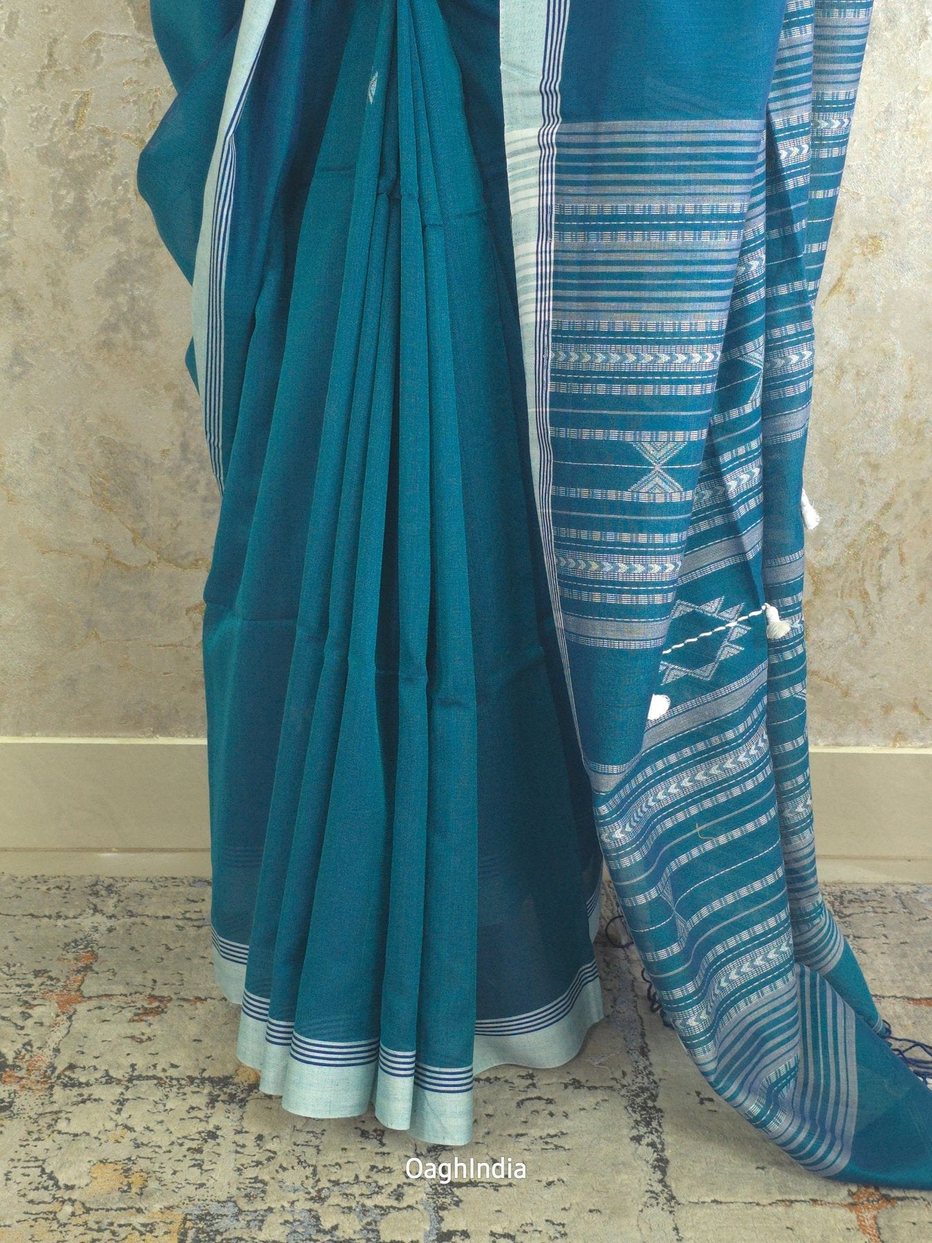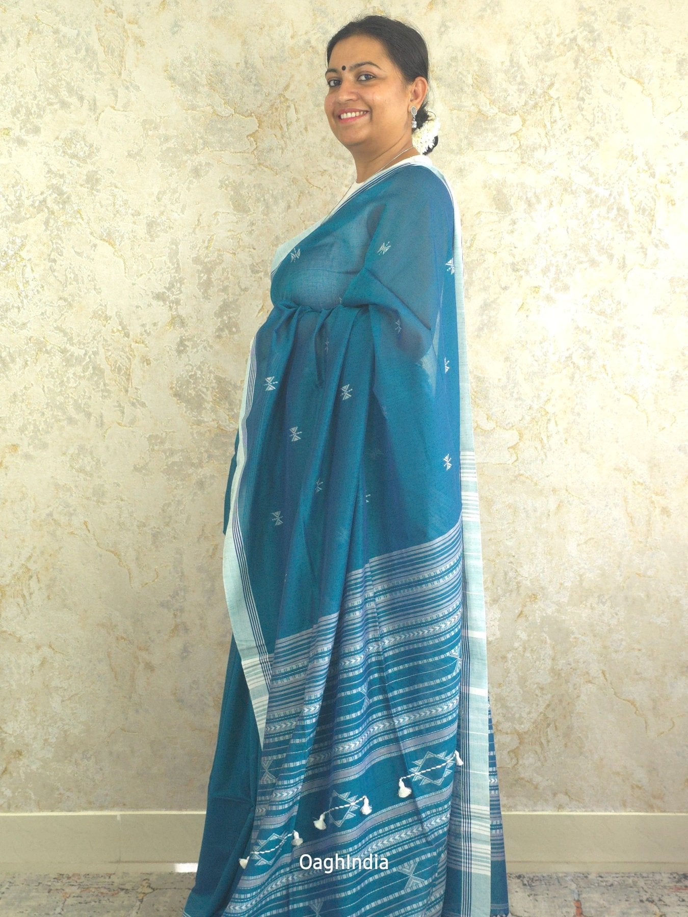 Handwoven with love in Bengal using the intricate Jamdani technique. 🌸 Crafted from 100% pure mercerized cotton, it’s lightweight with a beautiful sheen, blending tradition and elegance effortlessly.