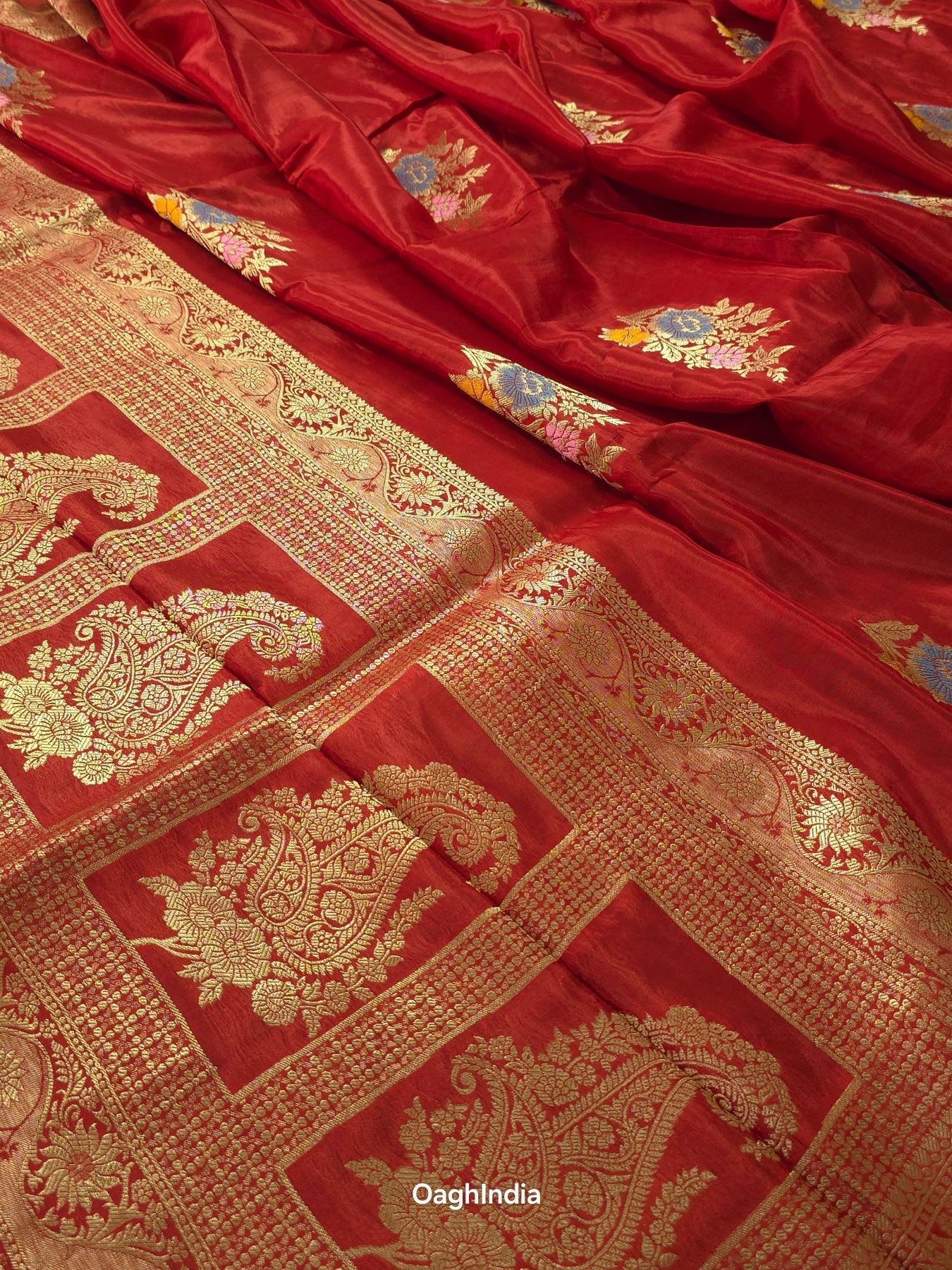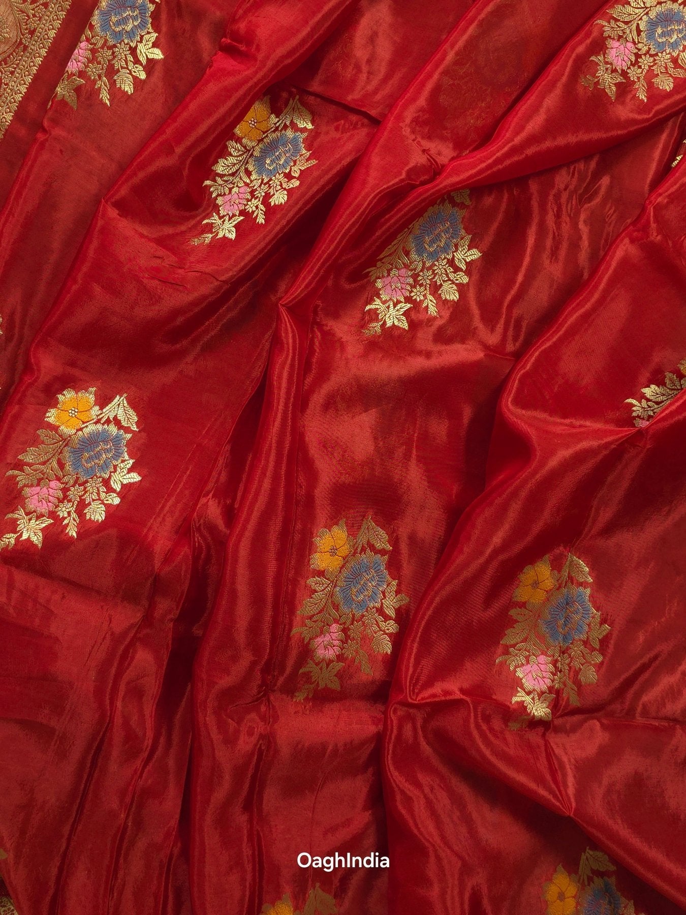 This stunning red Banarasi saree is a beautiful mix of semi Mashru silk and intricate Meenakari work. 🌹✨ The rich red color is perfect for festive occasions, while the Meenakari adds a colorful touch of elegance. With its smooth texture and gorgeous design, this saree is sure to make you feel like royalty! 👑
