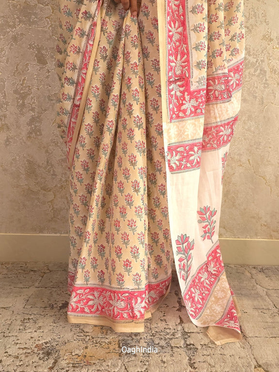QueenBee : Bagru Handblocked Pure Cotton Saree