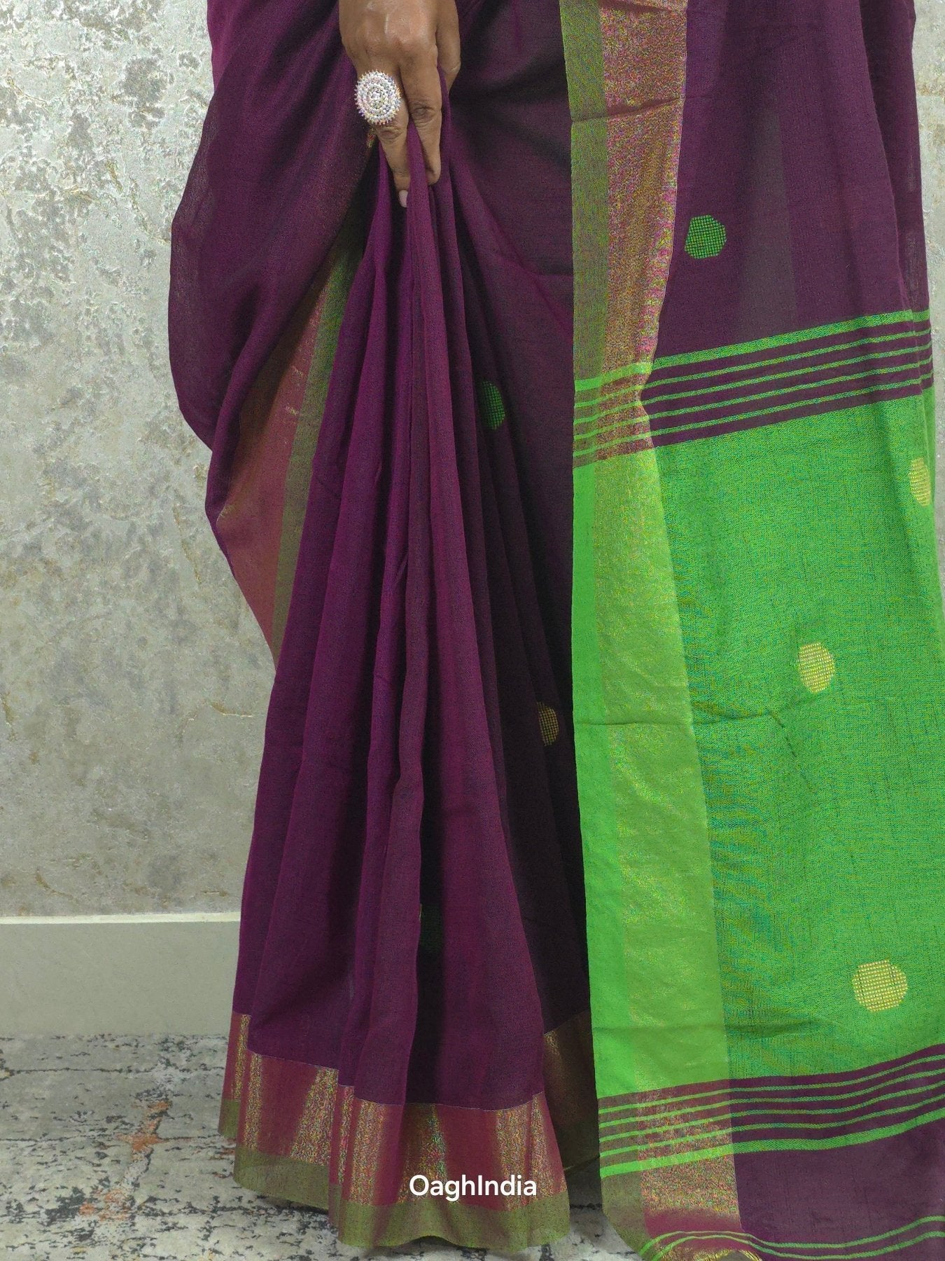 Candy : Beautiful handloom Maroon Cotton saree with Green Pallu