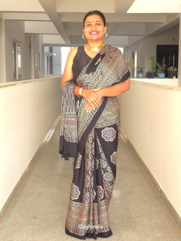 Whether worn for a festive occasion or a cultural event, Ajrakh Modal Sarees exude a distinct charm that reflects India's cultural richness. Each saree not only showcases exquisite craftsmanship but also tells a story of heritage and tradition. Embrace the artistry of Ajrakh and add a touch of timeless elegance to your wardrobe with these beautifully crafted sarees.
