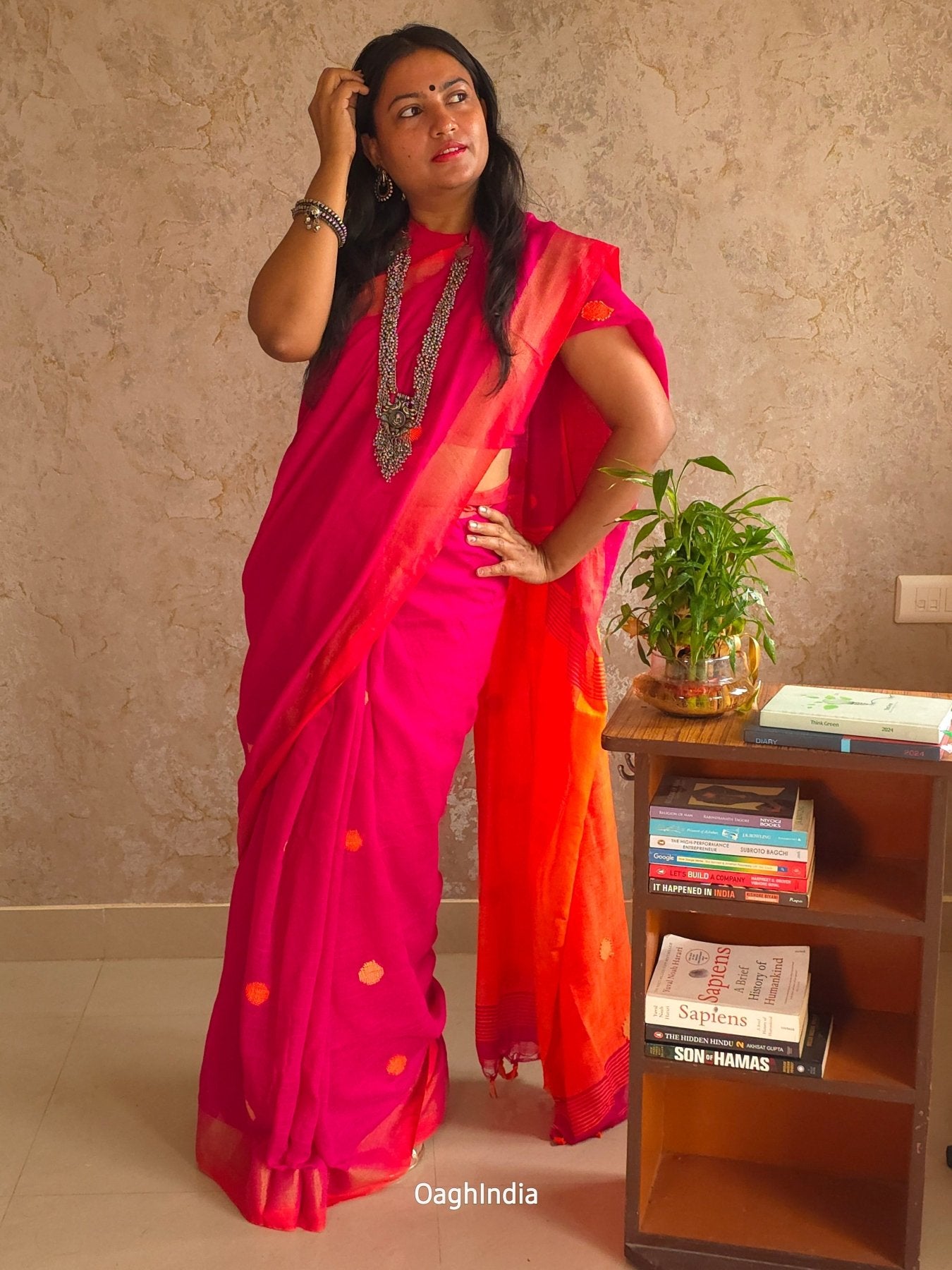 Candy - Pure Pink and Orange dual tone Cotton Saree
