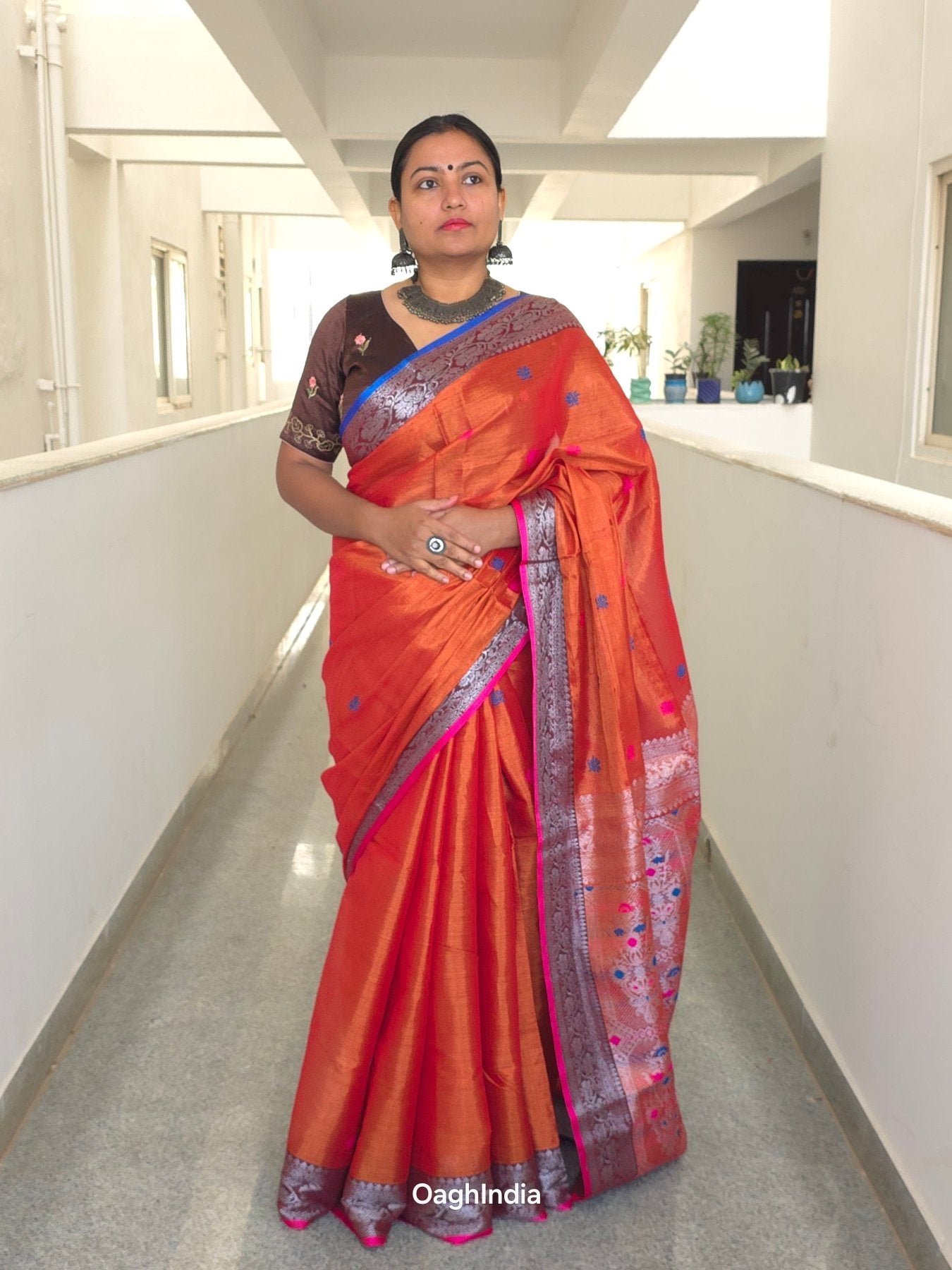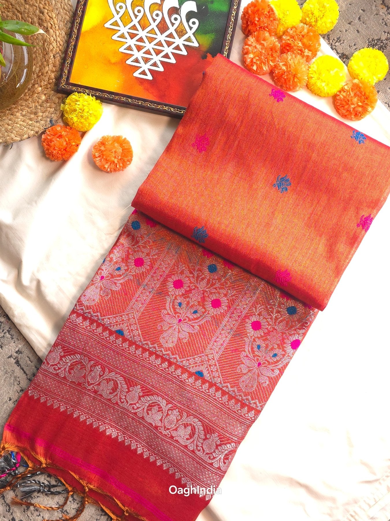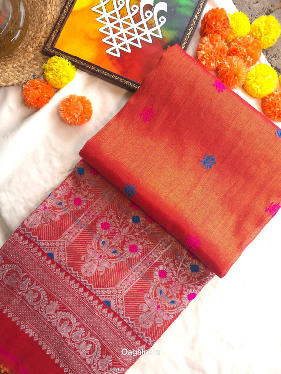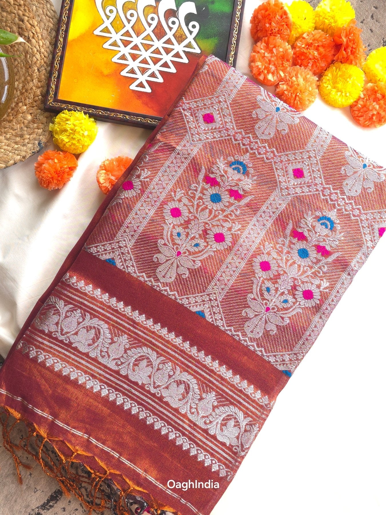 Whether you're gracing a wedding, a festive celebration, or a grand event, our Handloom Tissue Kanjivaram Saree ensures you radiate elegance and poise. Experience the unparalleled luxury of handloom craftsmanship and the royal allure of Kanjivaram with this stunning saree.