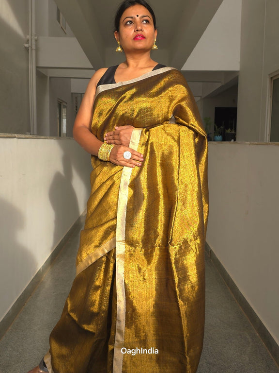 Introducing our exquisite Premium Tissue Saree, a perfect blend of elegance and charm! This saree is meticulously crafted using a unique combination of shimmering threads, creating a color that's both sophisticated and enchanting. Designed with care, this saree offers a soft and comfortable feel, making it ideal for all-day wear. Its luxurious appearance adds a touch of refinement, making it suitable for any occasion, from casual outings to formal events.