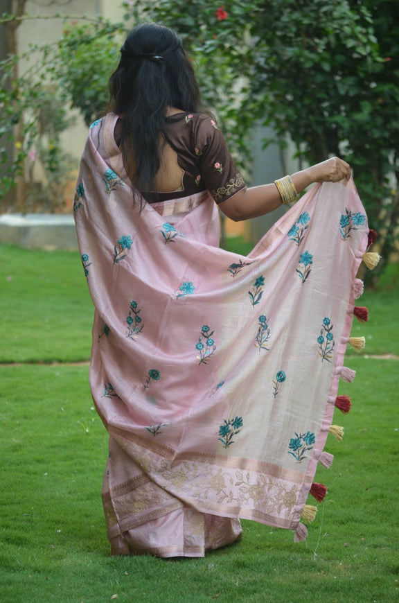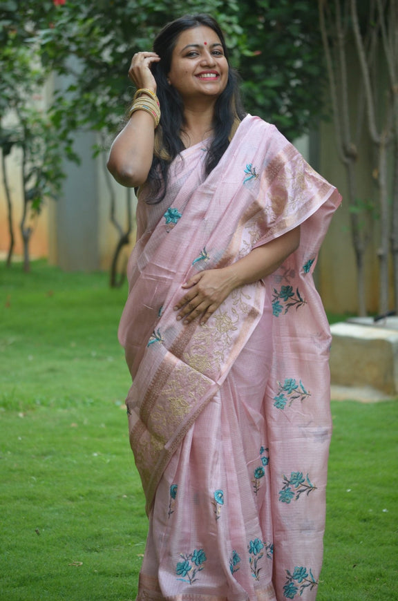 The sheer fabric of Kota Doriya, combined with elaborate embroidery, creates a stunning visual appeal, making these sarees a versatile choice for both casual and festive wear. The embroidery work adds a touch of elegance, enhancing the saree’s ethereal beauty.
