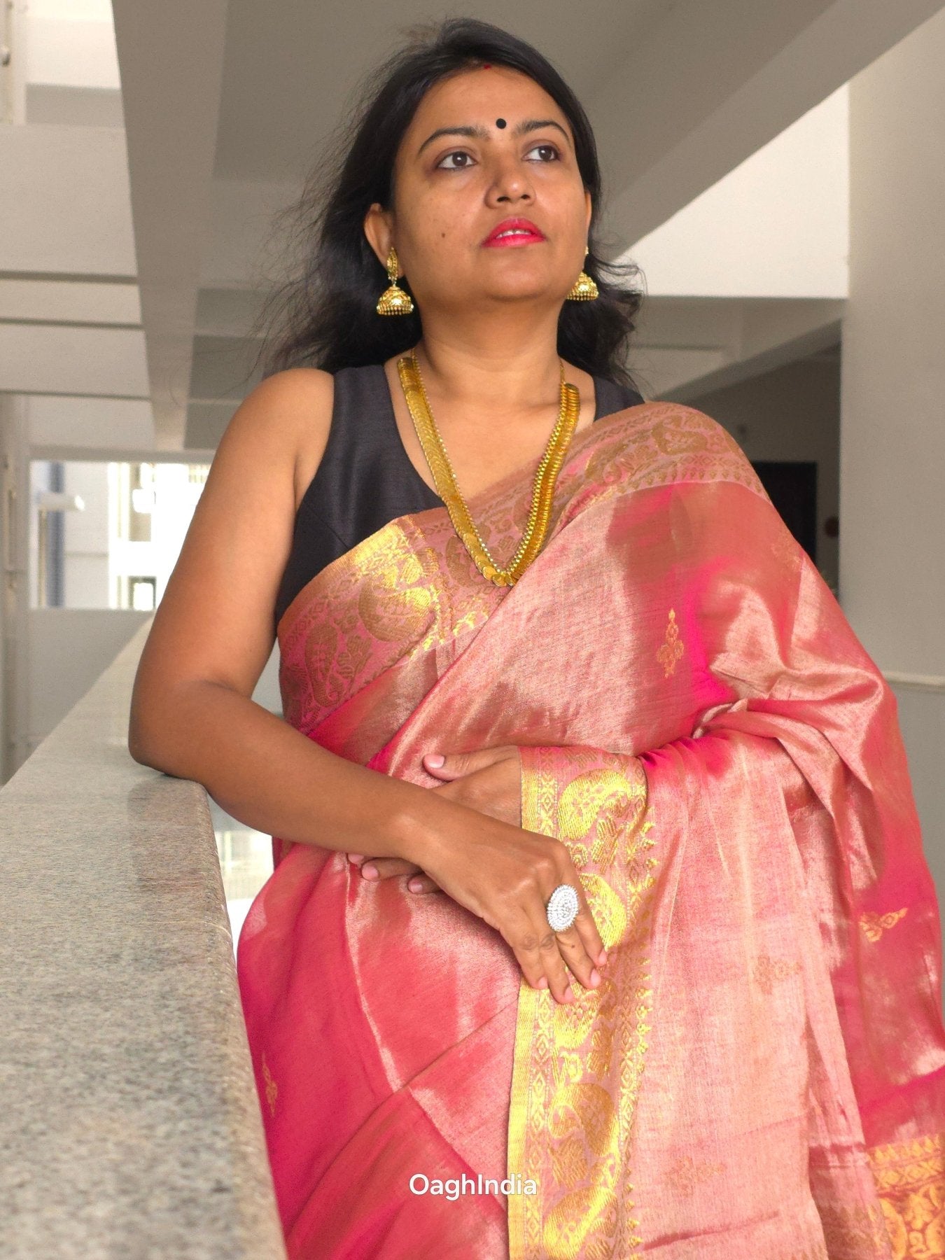Whether you're gracing a wedding, a festive celebration, or a grand event, our Handloom Tissue Kanjivaram Saree ensures you radiate elegance and poise. Experience the unparalleled luxury of handloom craftsmanship and the royal allure of Kanjivaram with this stunning saree.