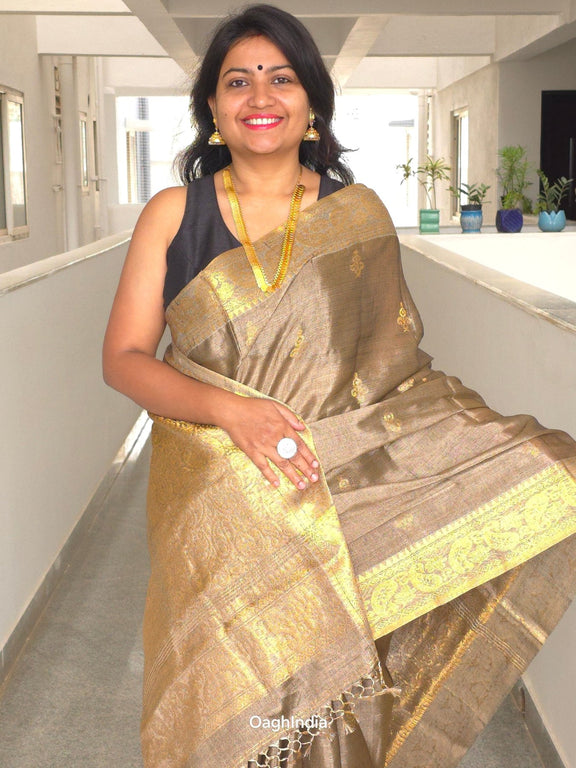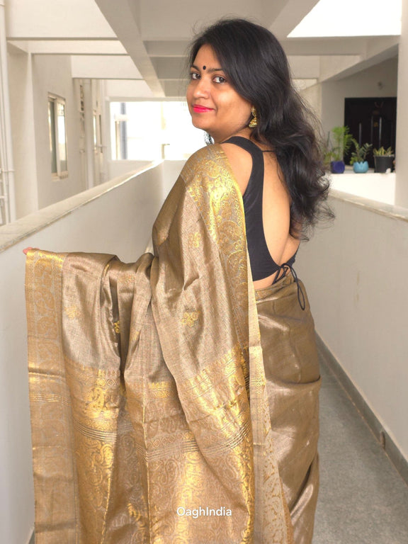 Whether you're gracing a wedding, a festive celebration, or a grand event, our Handloom Tissue Kanjivaram Saree ensures you radiate elegance and poise. Experience the unparalleled luxury of handloom craftsmanship and the royal allure of Kanjivaram with this stunning saree.