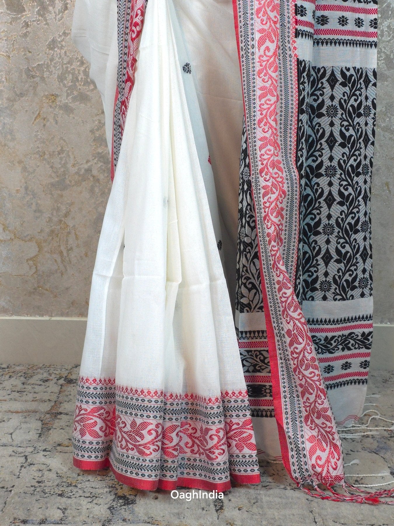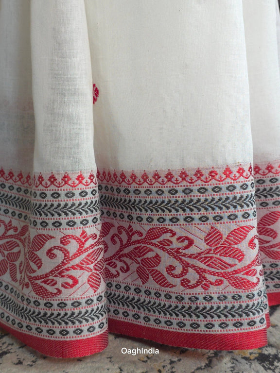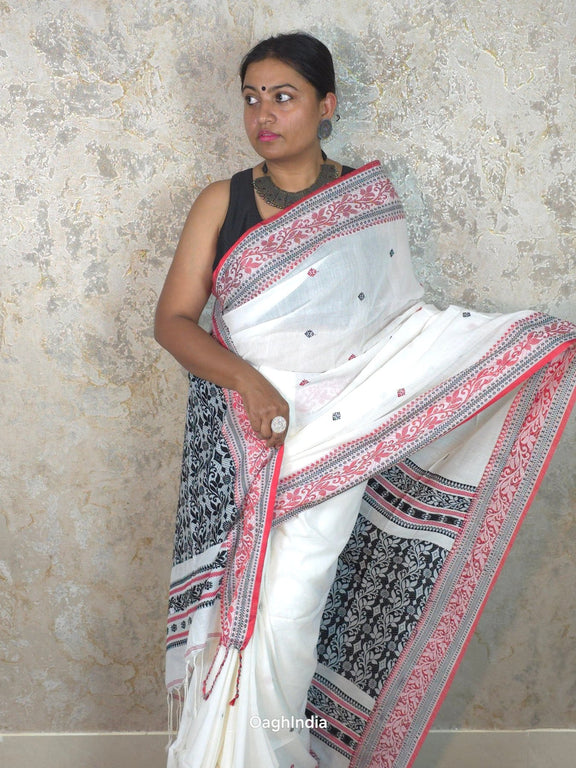 Imagine owning a saree that's like a piece of art 🎨, made by hand over 2-3 days with so much care ❤️. That's what our cotton Baluchuri sarees are! Made from the finest mercerised cotton, they’re super soft and easy to wear 🌸. These sarees come from Phulia, a place famous for its beautiful cotton sarees 🌍.