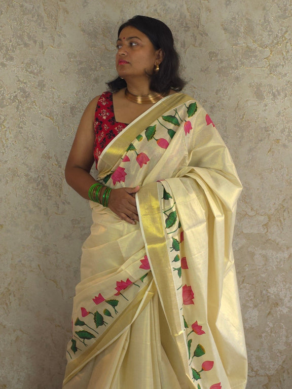 Lotus : Traditional Onam Saree From Kerala