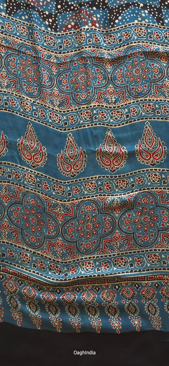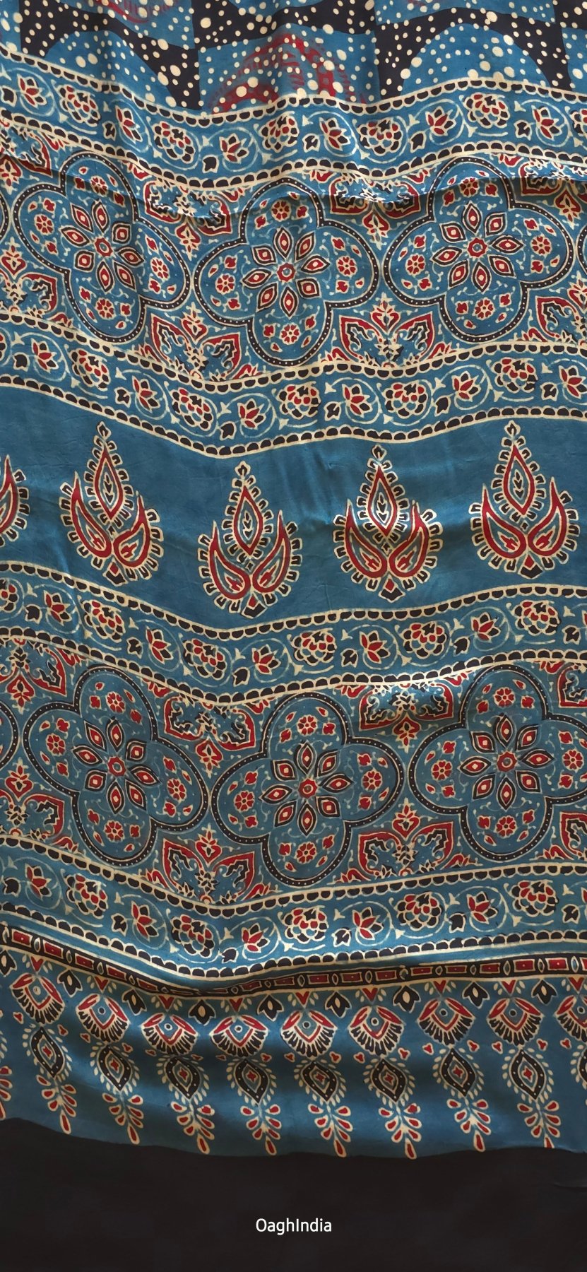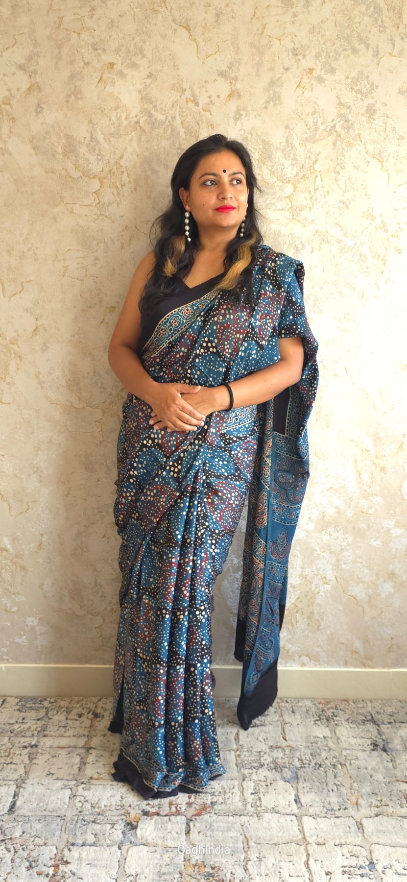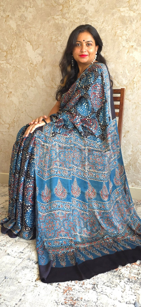 Discover the timeless allure of Ajrakh Modal Sarees, a testament to the rich heritage of Ajrakh handblock printing. Originating from the ancient craft traditions of Gujarat and Rajasthan, Ajrakh artistry is celebrated for its intricate geometric patterns and natural dyes, crafted using traditional techniques passed down through generations.