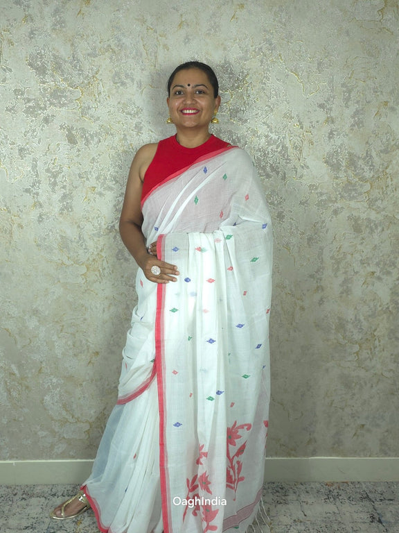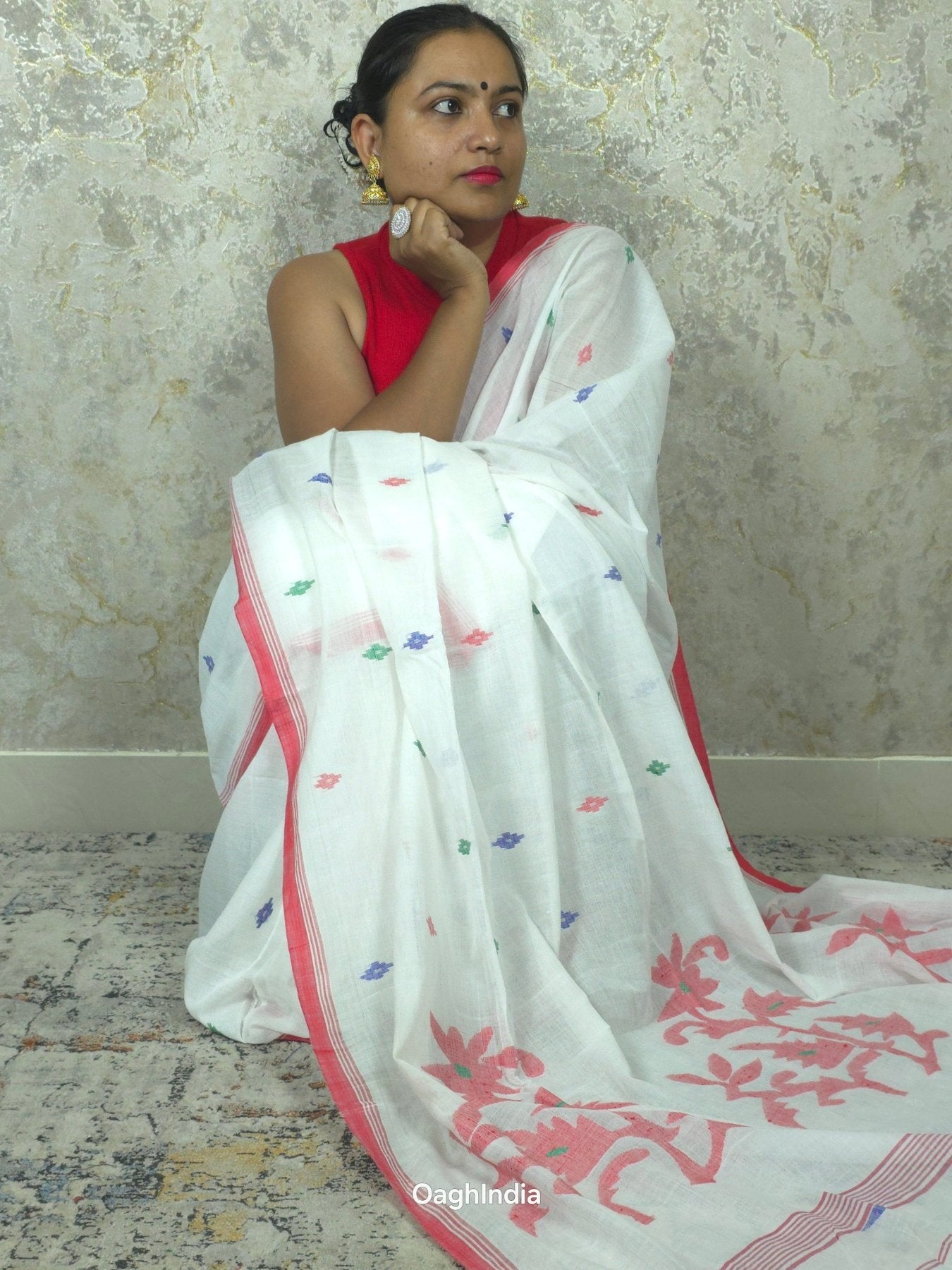 Imagine owning a saree that's truly a work of art 🎨, crafted by hand over 2-3 days with unmatched care and devotion ❤️. That's the beauty of our Dashami Special Jamdani Sarees! Handmade from the finest mulcotton, these sarees are incredibly soft and effortless to wear 🌸. Hailing from Phulia, a region renowned for its exquisite Jamdani weaves, these sarees bring tradition and grace together, perfect for celebrating Durga Puja Dashami in style 🌍.