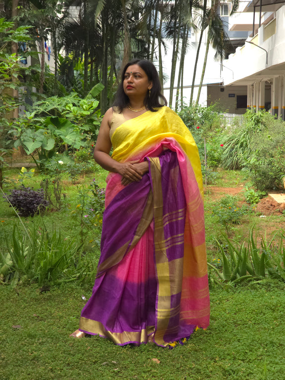 Woven in the looms of Bhagalpur, this pure linen saree carries a texture that breathes as naturally as it drapes. The weave reflects generations of craftsmanship, giving you a saree that feels modern yet rooted. Lightweight, airy, and effortlessly elegant—this is linen at its most authentic. A rare weave that speaks of craft, culture, and quiet luxury.