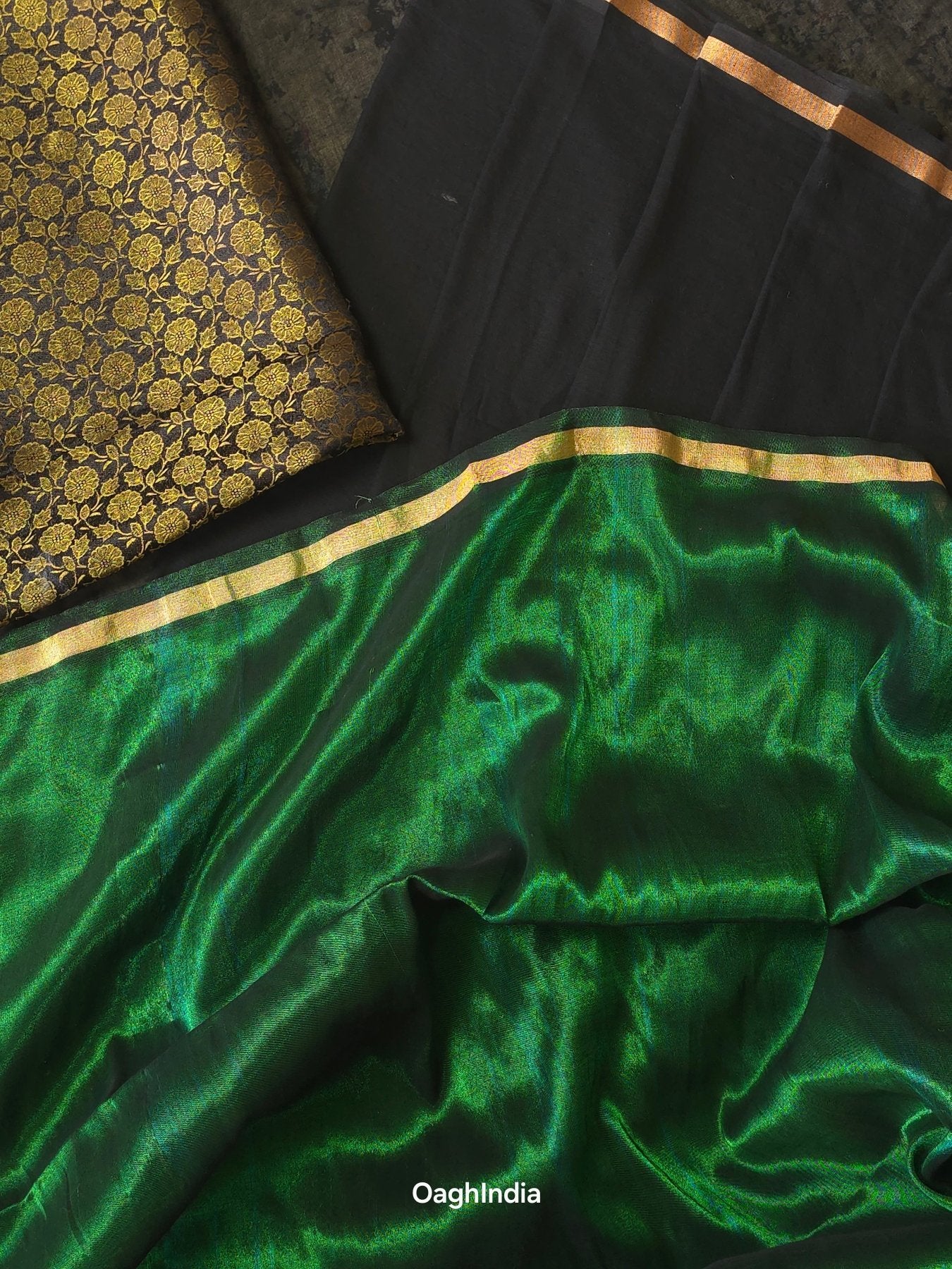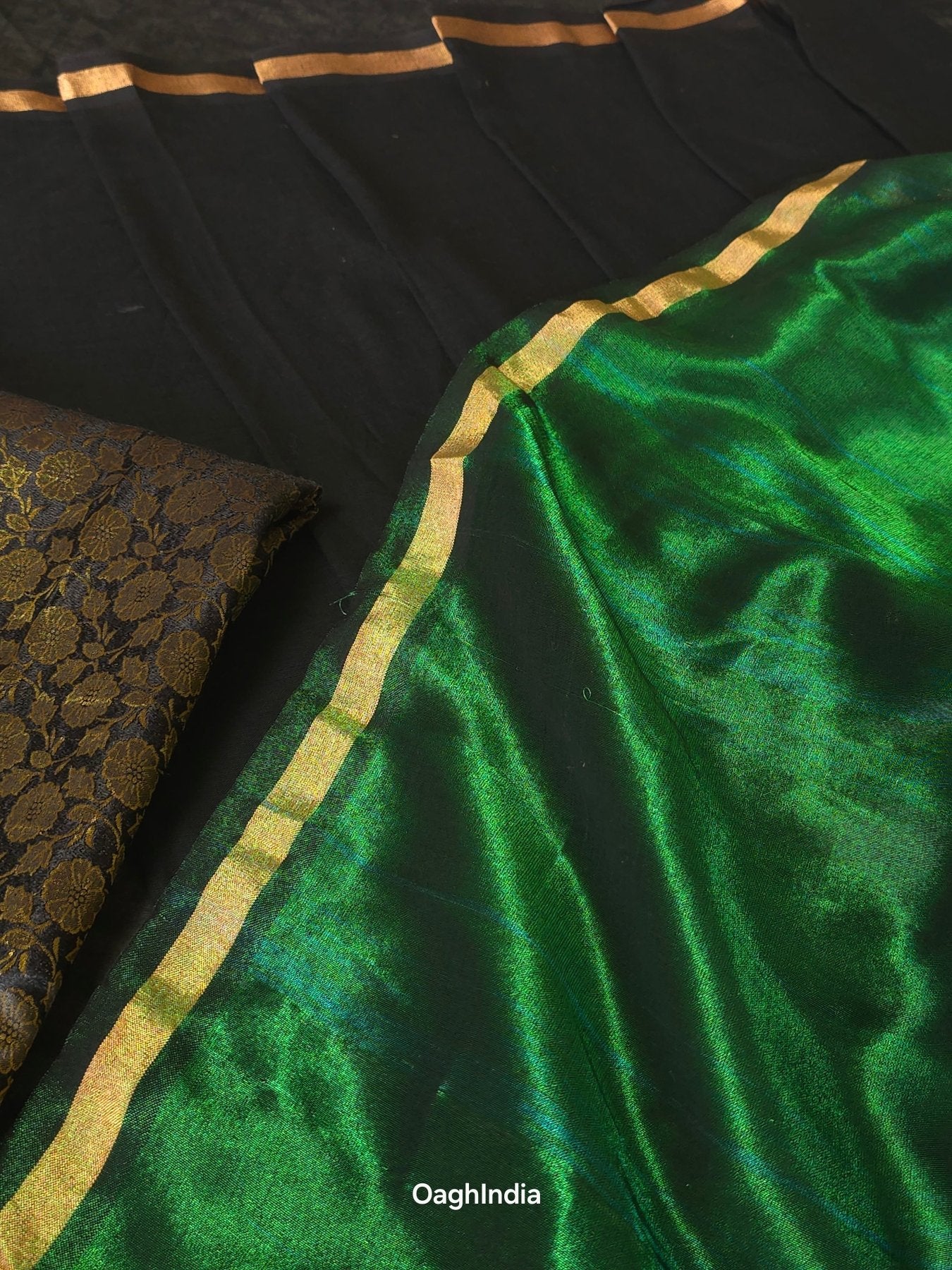 Blouse Piece: Yes, Black Banarasi Brocade