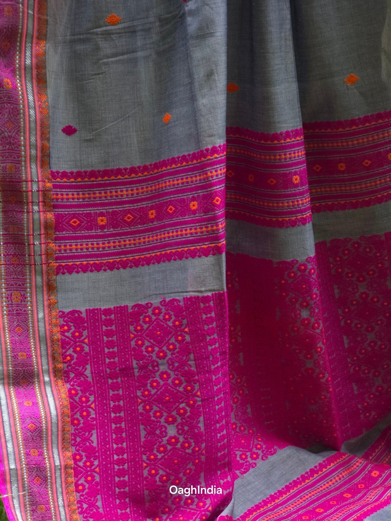 Paansh – Grey Handloom Pure Cotton Saree with Magenta Accents