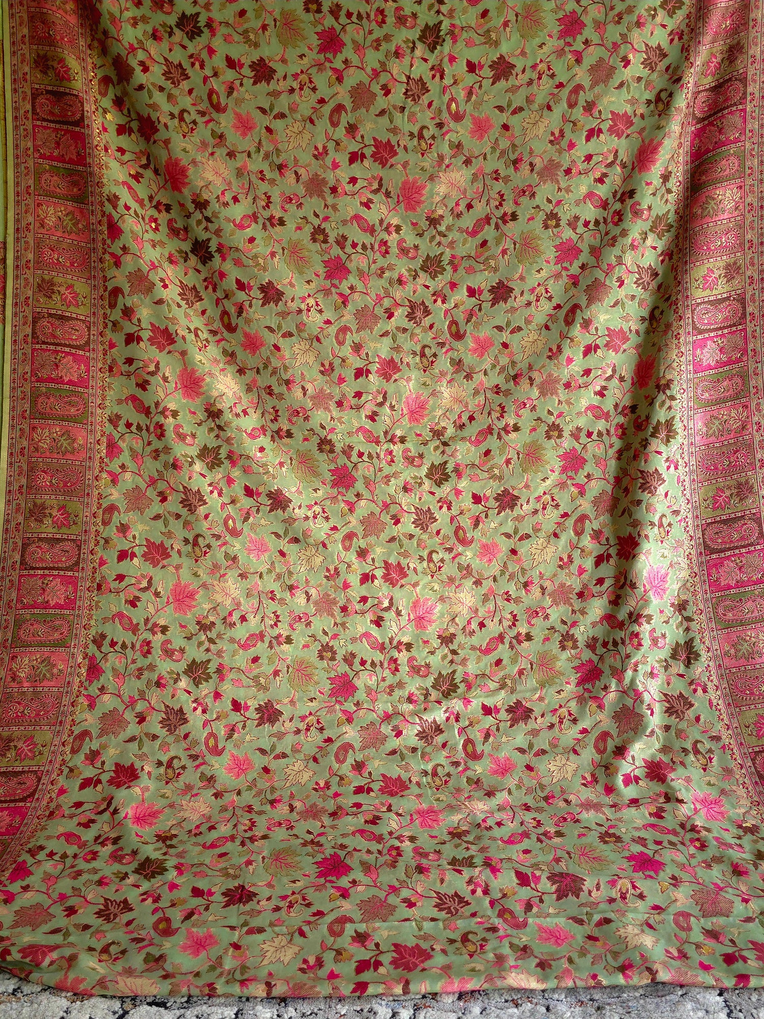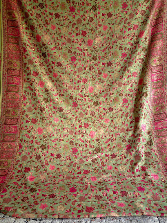 Parajika (Pistachio & Pink): Authentic Kashmiri Kani Saree