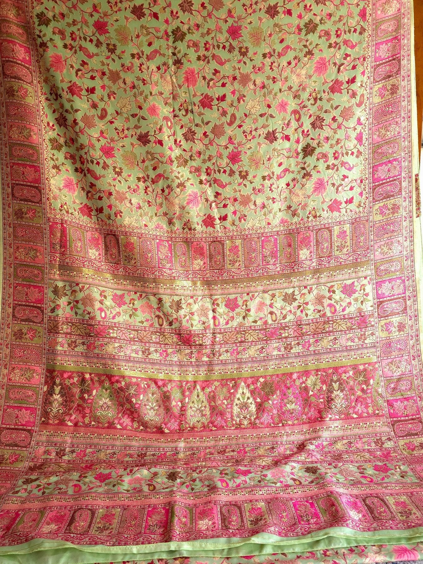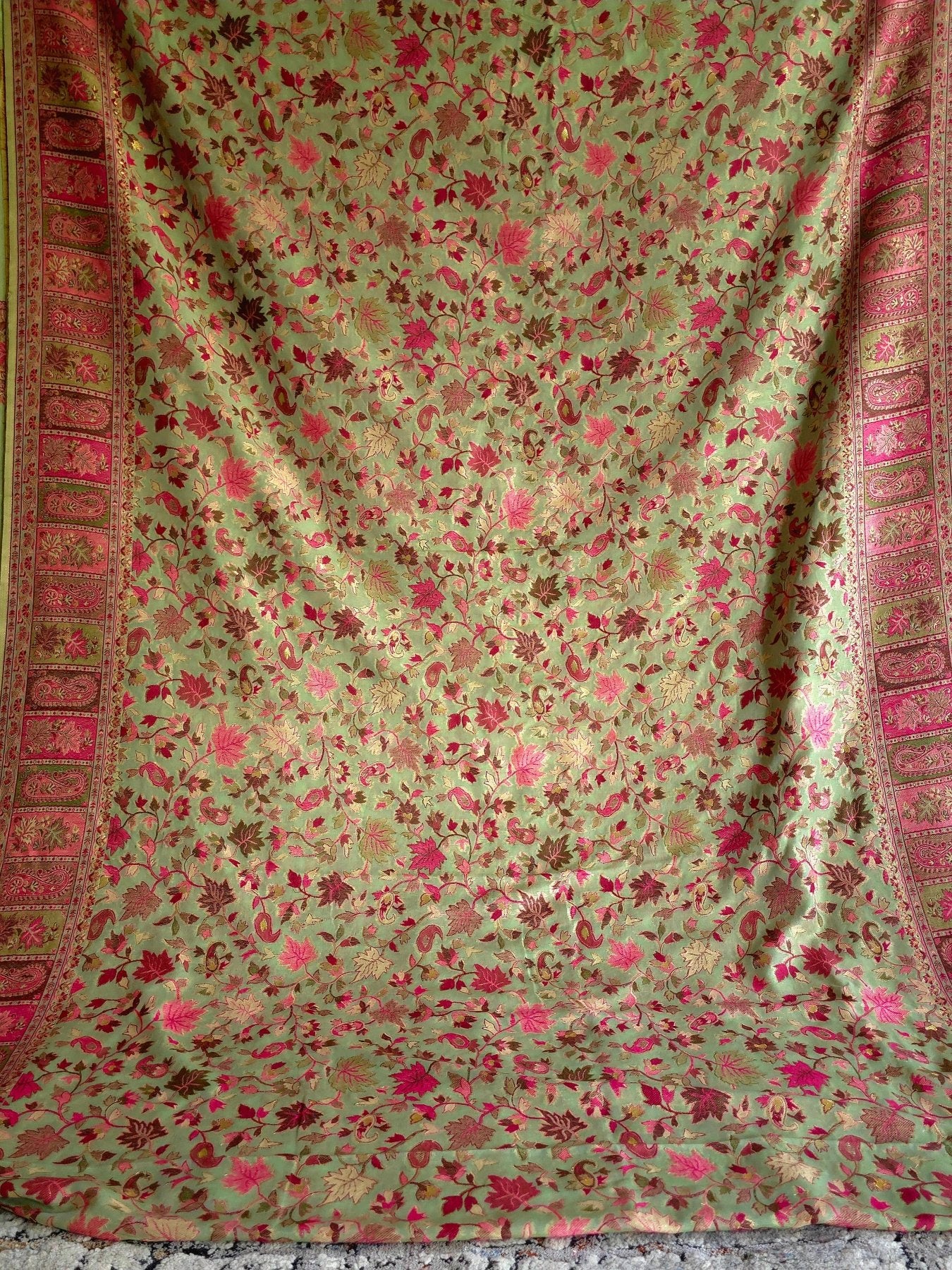 Parajika (Pistachio & Pink): Authentic Kashmiri Saree