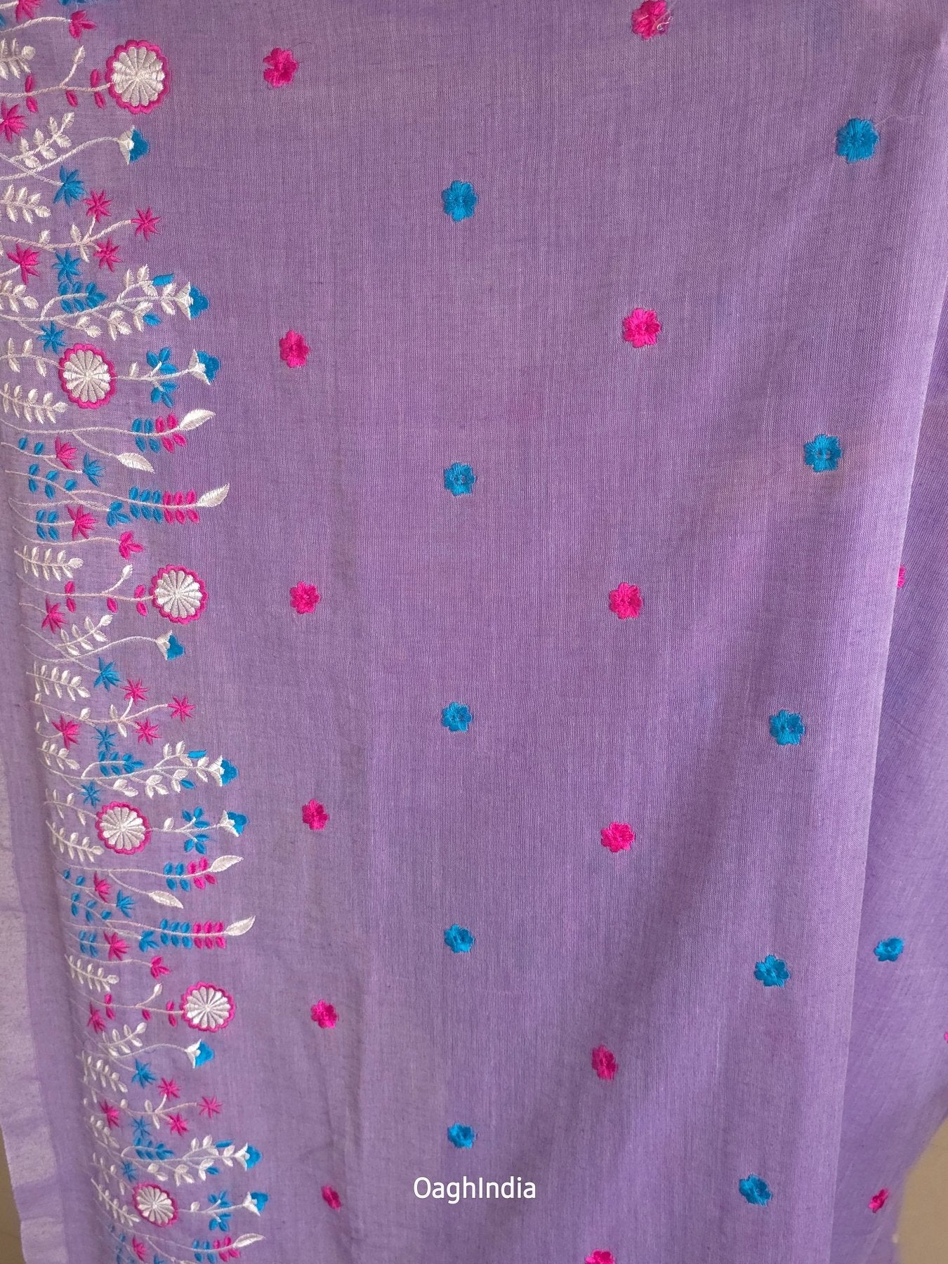 PhoolRani : Soft Cotton flower embroidery saree (Lavender)