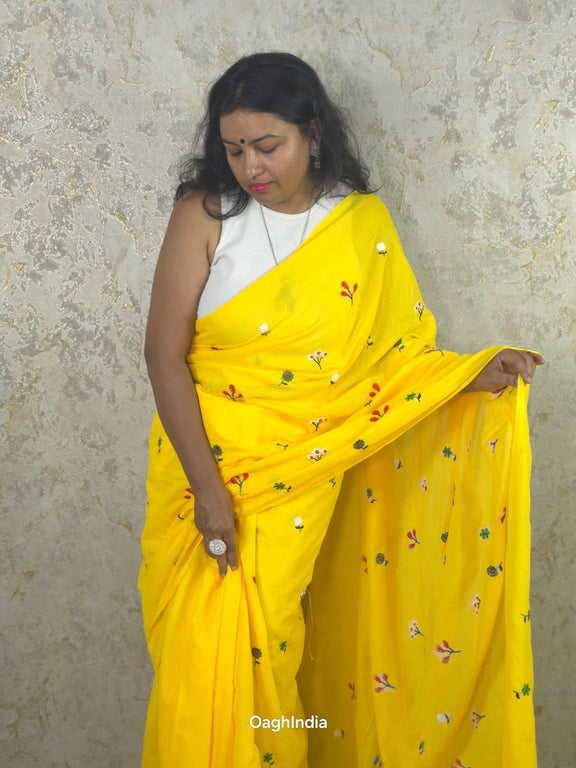 PhoolRani : Soft Cotton flower embroidery saree (Sunflower Yellow)