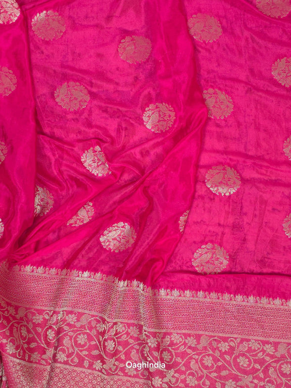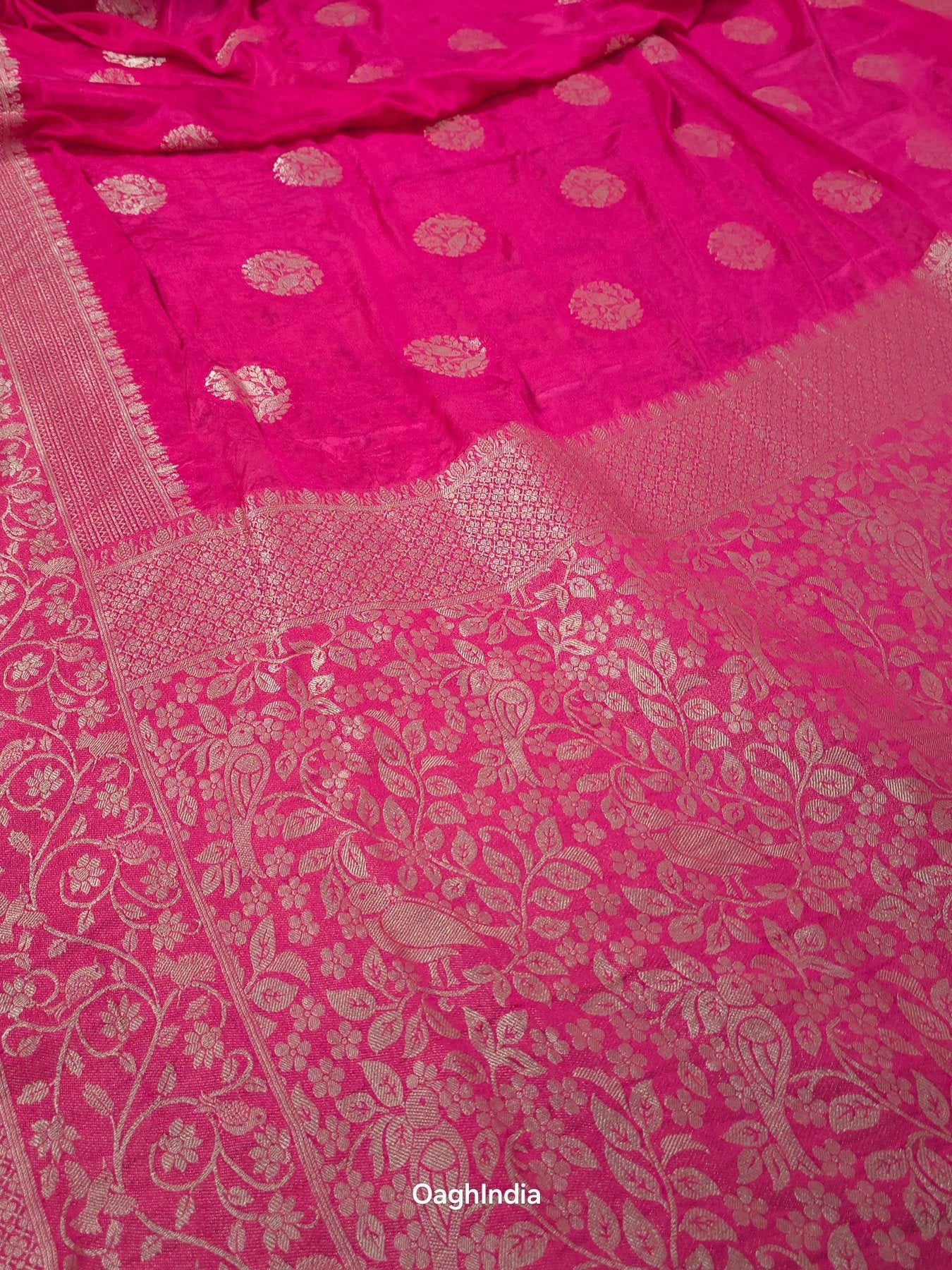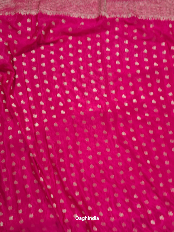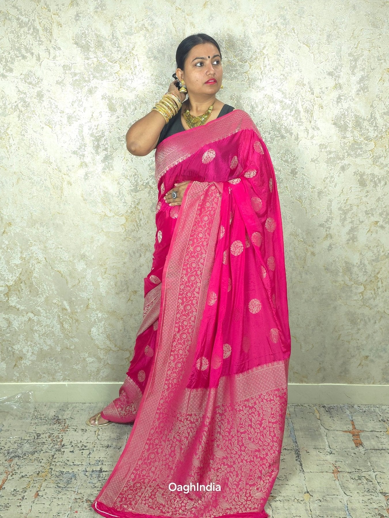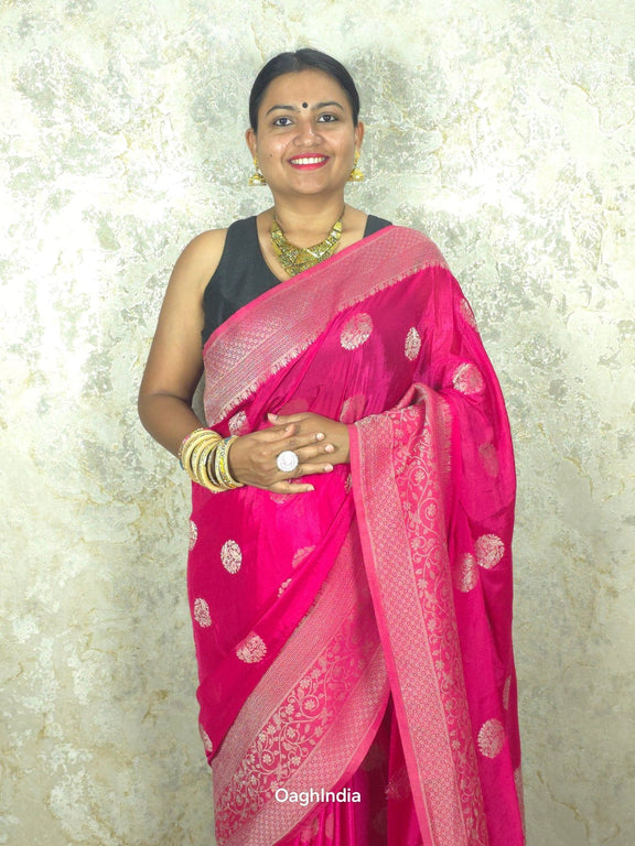 This enchanting pink Katan Banarasi saree is beautifully adorned with silver zari butis, adding a touch of elegance and sparkle. 🌸✨ The soft pink hue combined with the shimmering silver details creates a perfect balance of grace and sophistication. Ideal for festive celebrations, this saree drapes effortlessly, making it a delightful addition to your wardrobe.