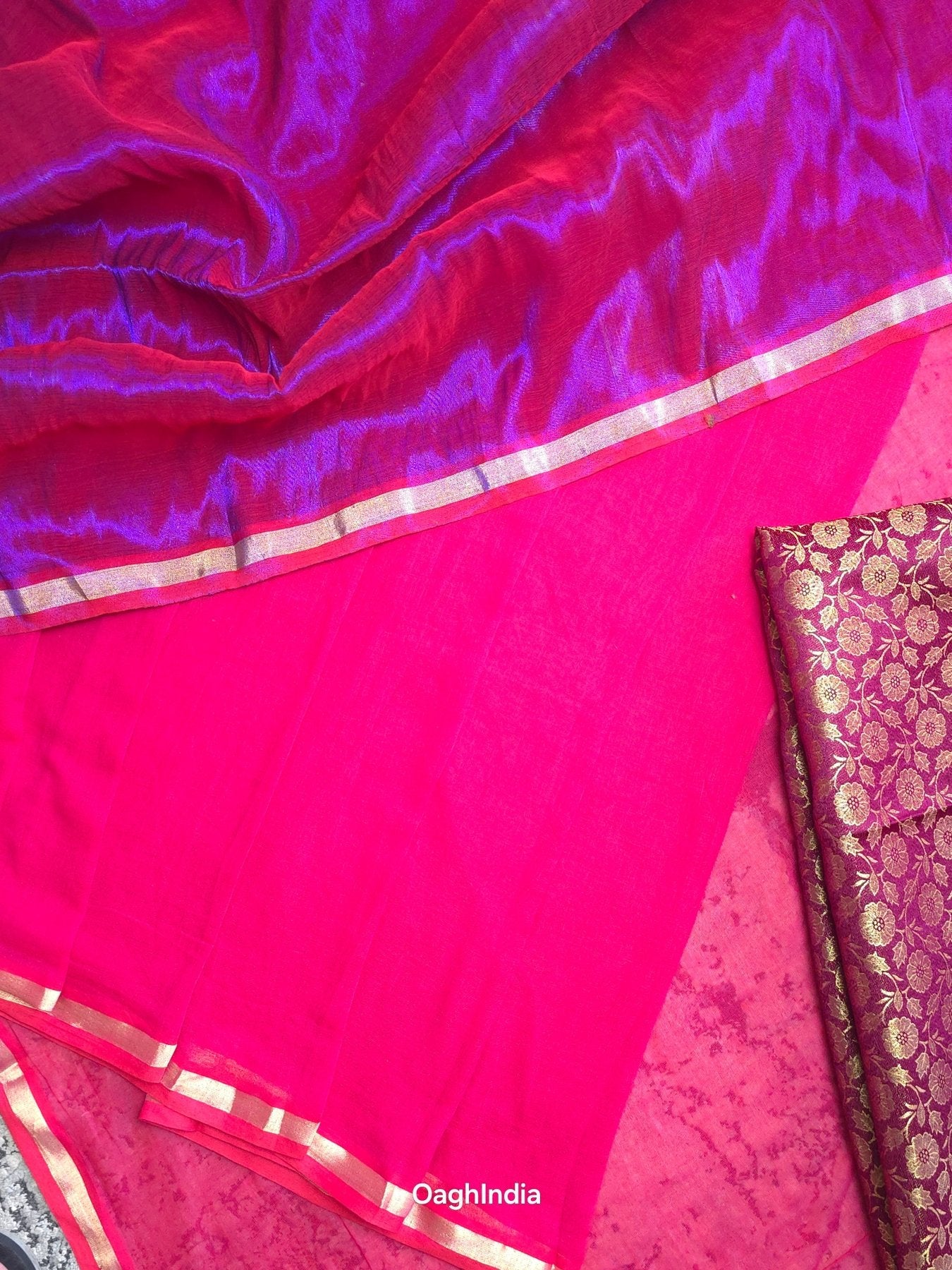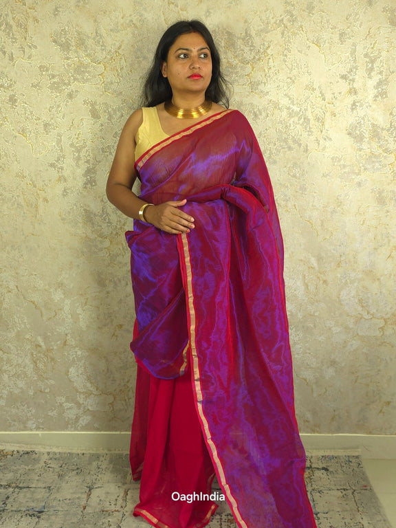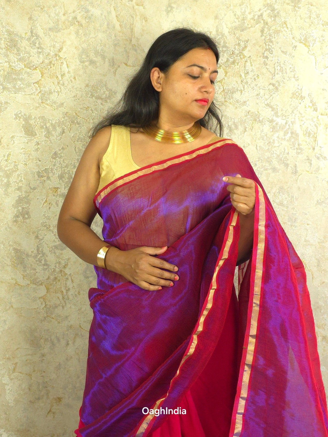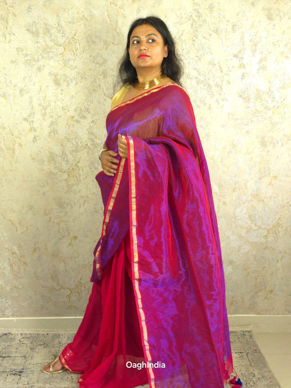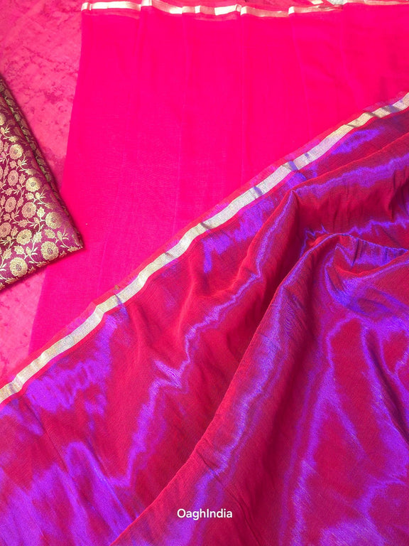 Pink Rose is where timeless grace meets modern ease. Crafted with pink mul cotton on the body, this saree drapes like a dream, gently contouring your silhouette for a flattering, slimming effect. The magenta tissue pallu, finished with a lustrous golden border, adds just the right amount of shimmer. Perfect for evenings when you want to make a statement with effortless sophistication.