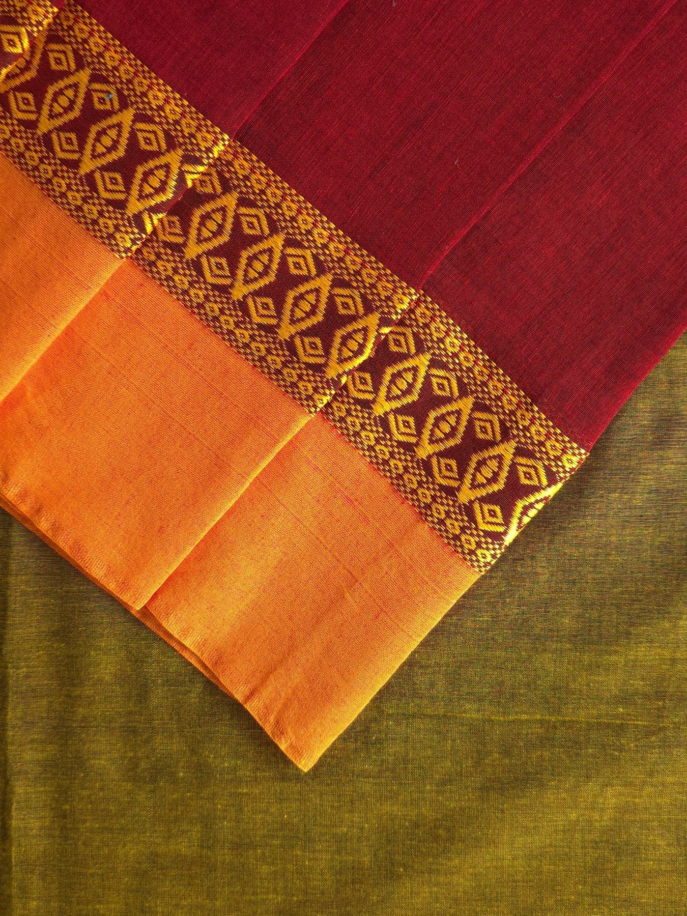 Crafted from pure cotton, these sarees are as comfortable as they are beautiful! With a soft, easy drape, you'll feel at ease all day long. The plain body gives a minimalistic charm, while the intricately woven borders and contrasting hues on the body and pallu add an eye-catching pop of elegance.