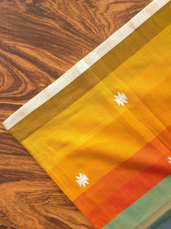 This is Oagh exclusive Rainbow saree with Yellow base.