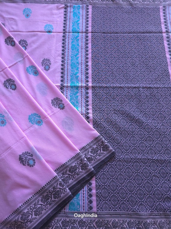 Grace meets charm in this beautifully handwoven mercerized cotton saree, where delicate motifs and vibrant hues come alive. With its soft pastel base and intricate detailing, this saree strikes the perfect balance between playful and poised.