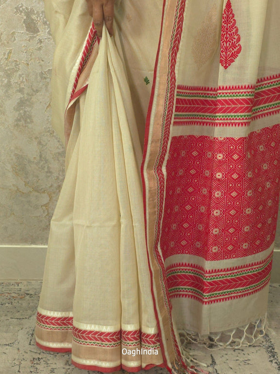 Introducing Chandni, a lovely Bishnupur Handloom Tussar by Cotton saree in a soft beige color. This saree is perfect for women who appreciate classic and comfortable clothing. It’s designed to be soft and easy to wear, making it a great choice for any special occasion.