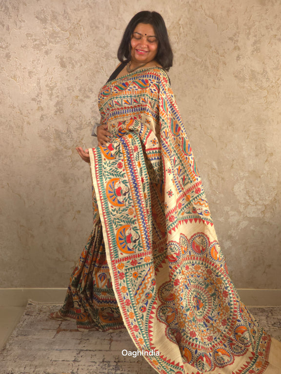 Siya : Pure Silk Hand Painted Madhubani Art Saree (Silk Mark)