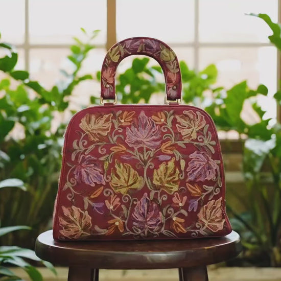 The Phukok Tote - Maroon | Embroidered Velvet Floral Tote