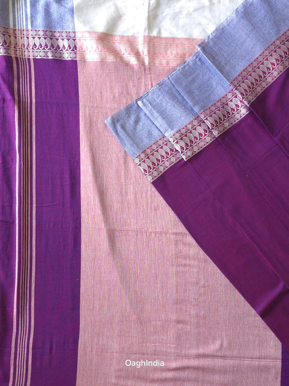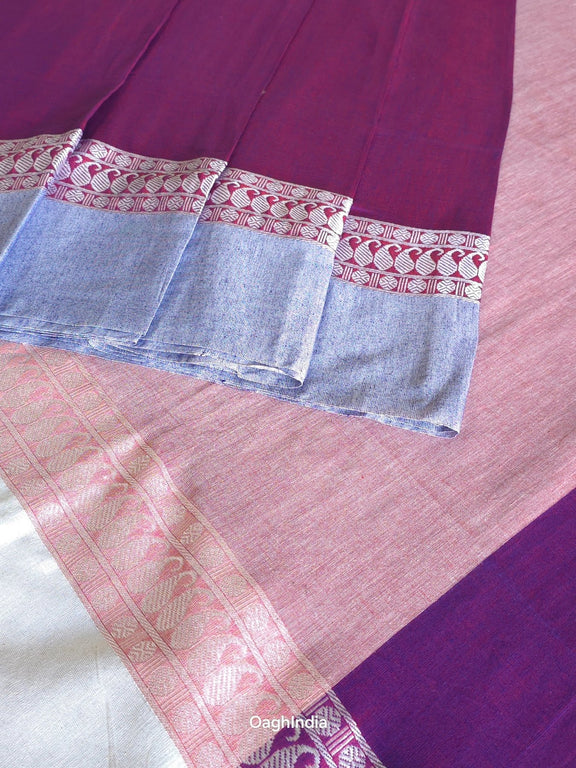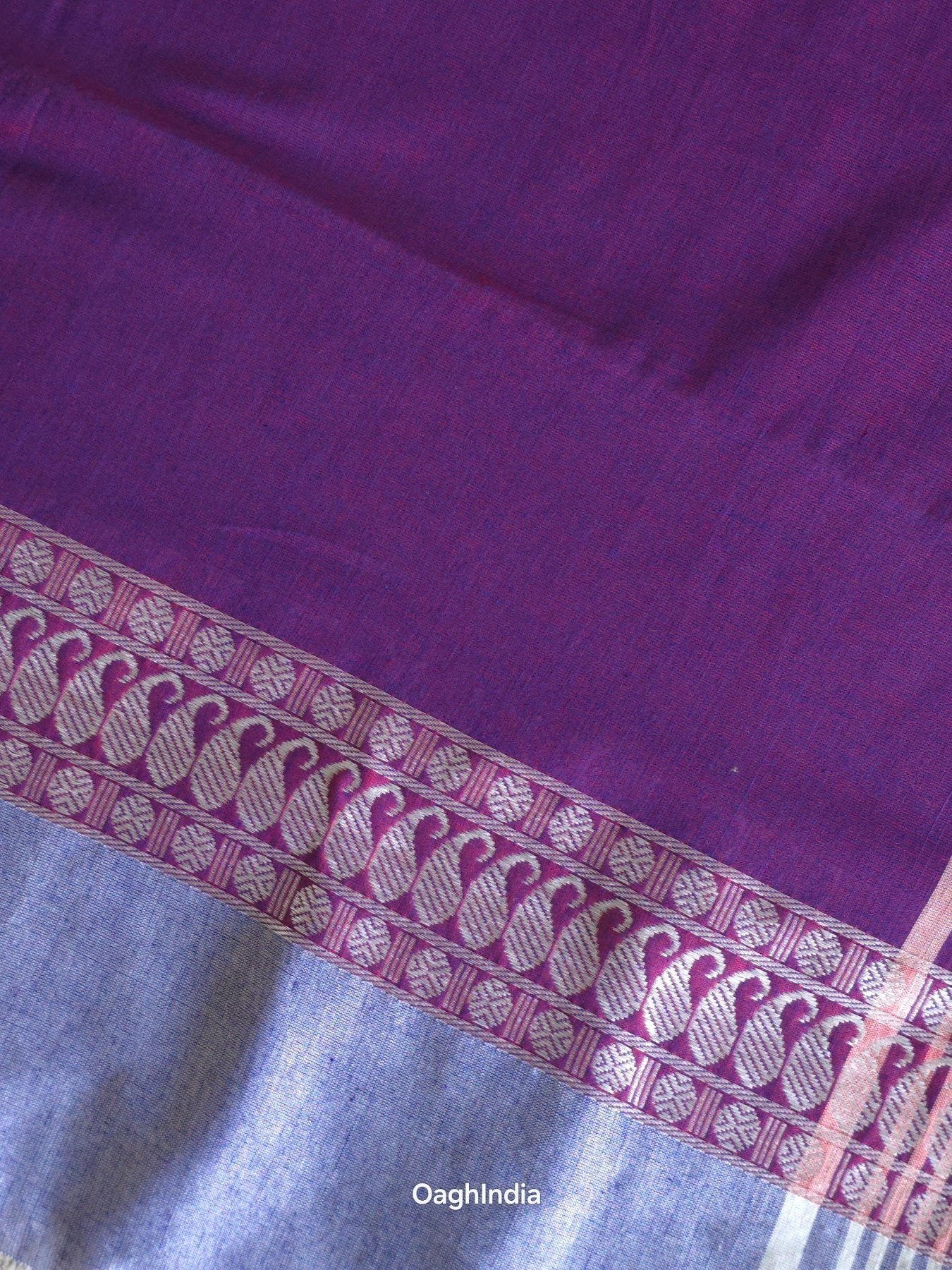 Crafted from pure cotton, these sarees are as comfortable as they are beautiful! With a soft, easy drape, you'll feel at ease all day long. The plain body gives a minimalistic charm, while the intricately woven borders and contrasting hues on the body and pallu add an eye-catching pop of elegance.