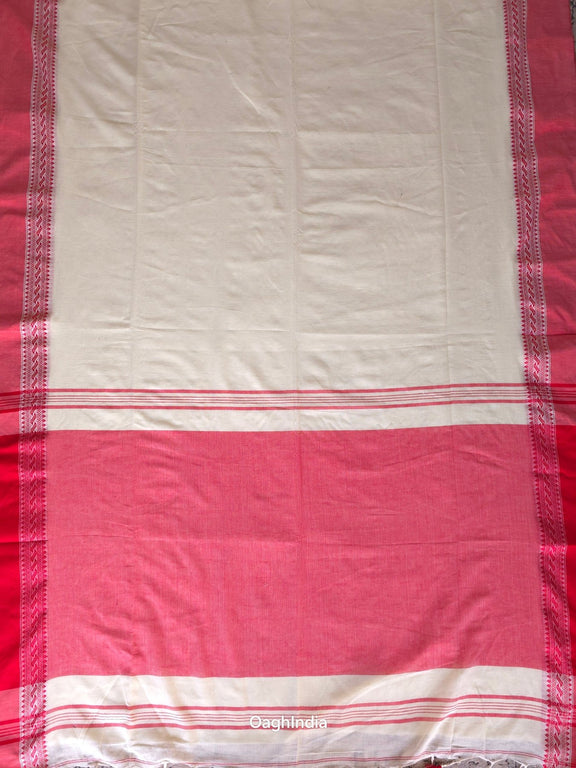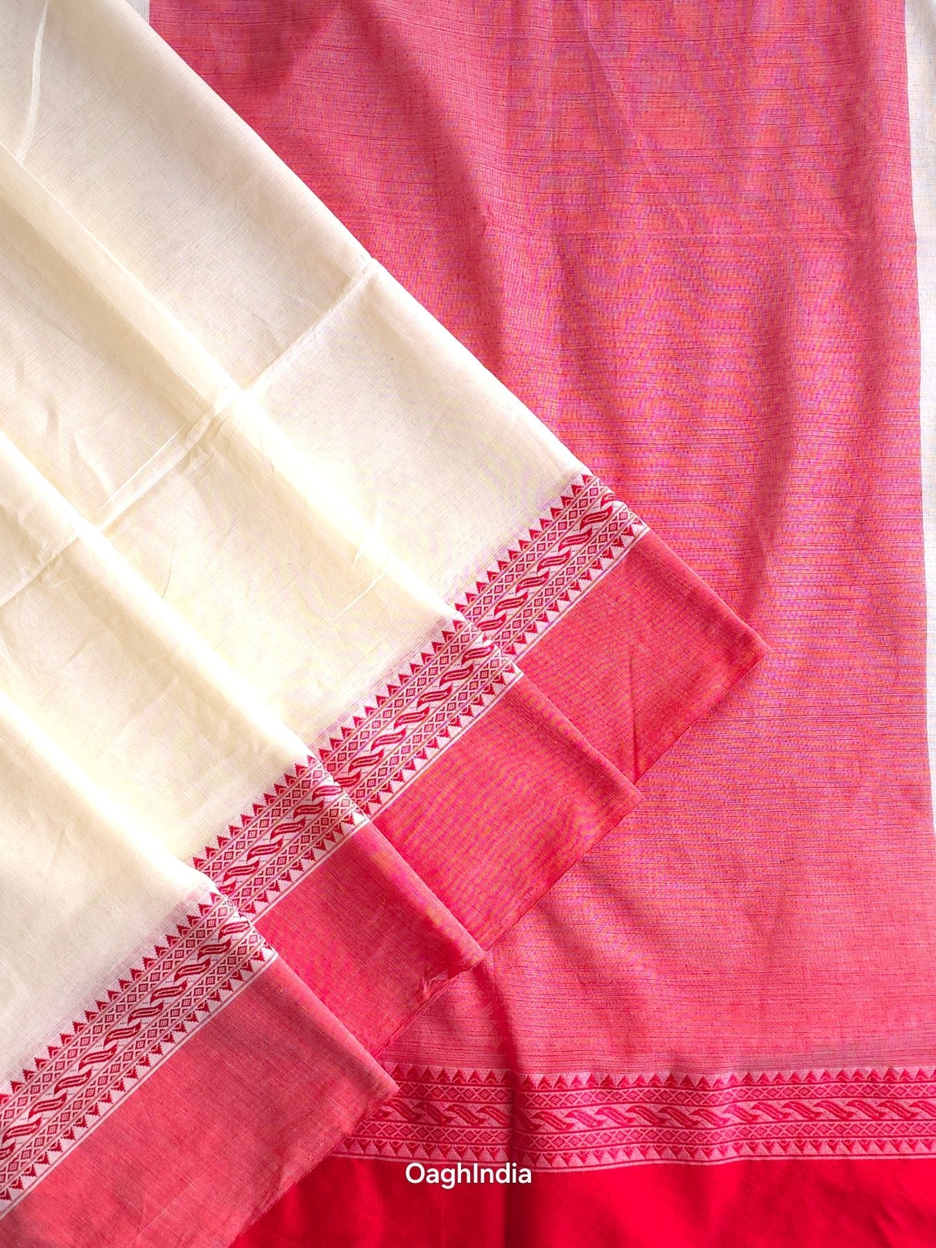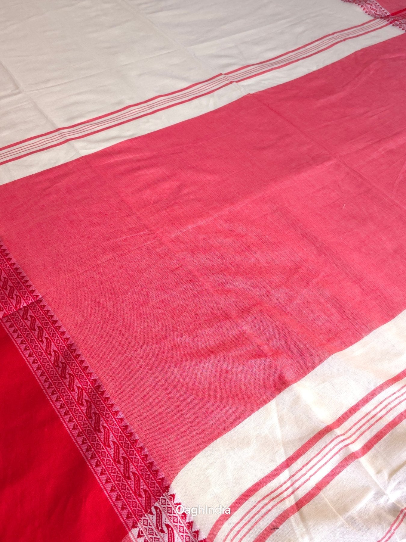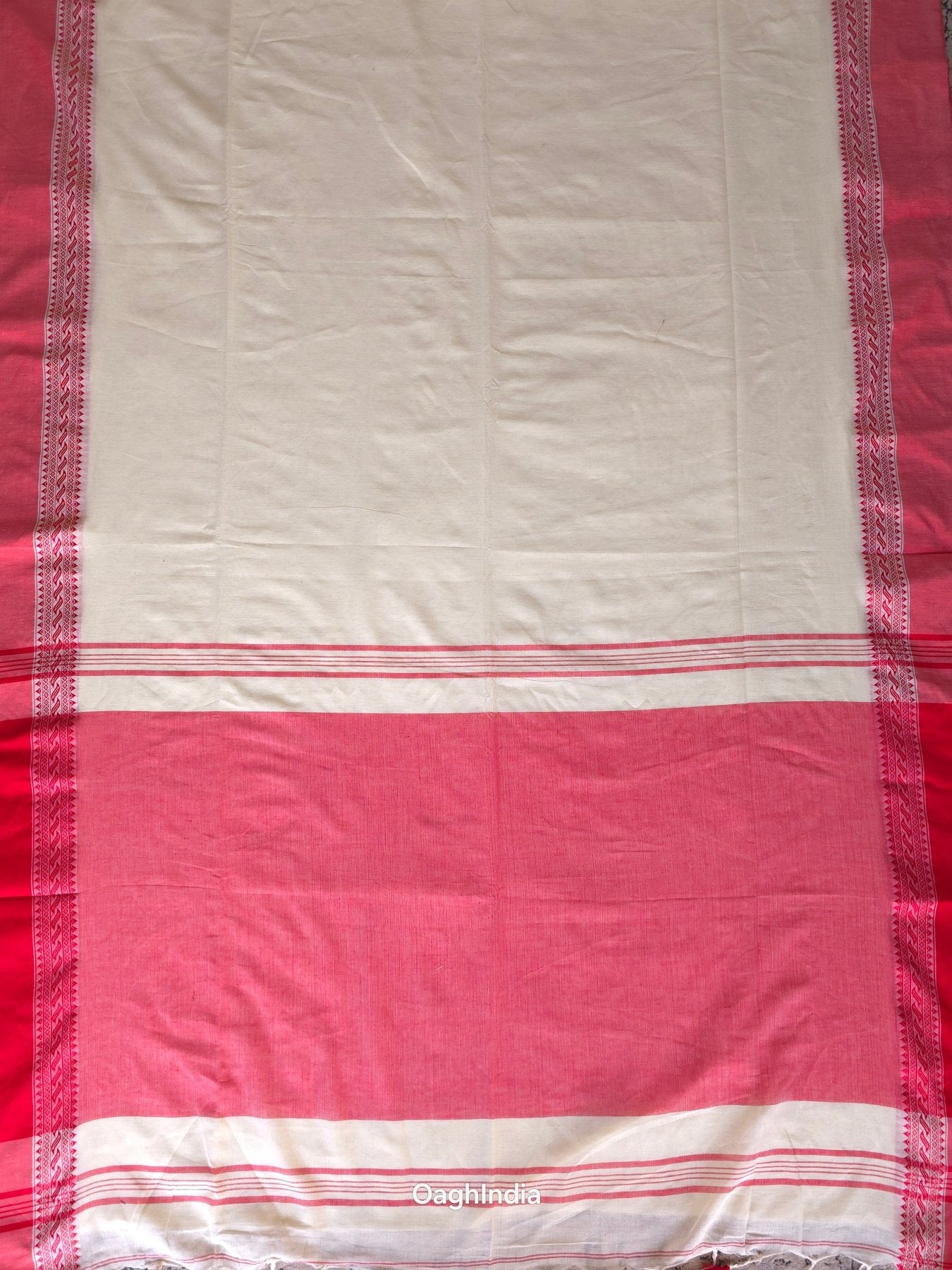 Crafted from pure cotton, these sarees are as comfortable as they are beautiful! With a soft, easy drape, you'll feel at ease all day long. The plain body gives a minimalistic charm, while the intricately woven borders and contrasting hues on the body and pallu add an eye-catching pop of elegance.